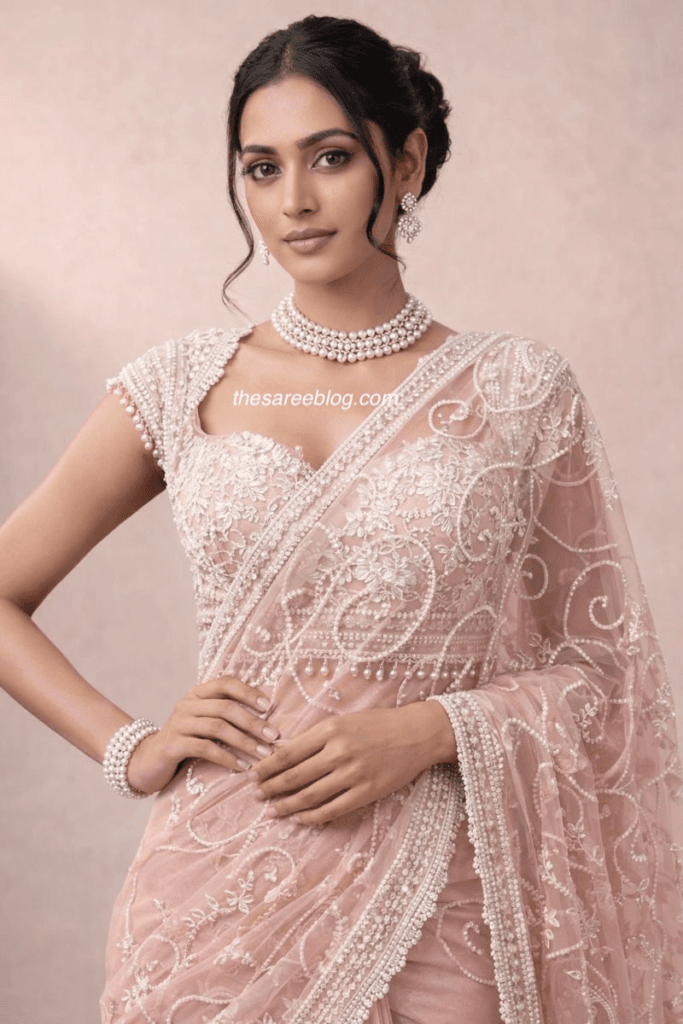 This guide explores chikankari saree styling through 5 distinct moods. Each mood reflects a different expression of elegance. Each look shows how thoughtful styling can completely redefine the saree.