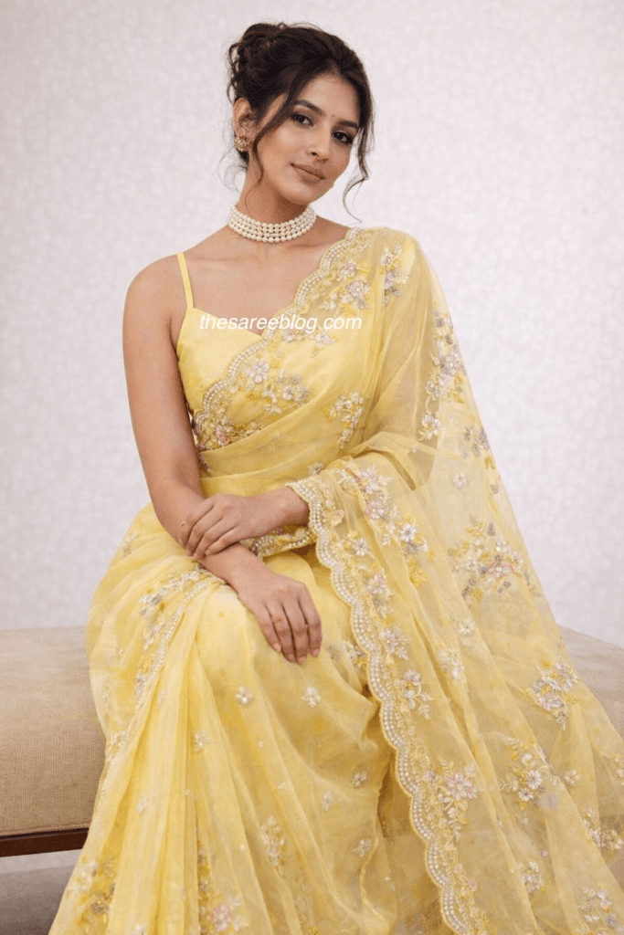Yellow chikankari sarees bring a sense of joy. They feel light, cheerful, and full of movement. This look is perfect for haldi functions, summer celebrations, or daytime festivities.