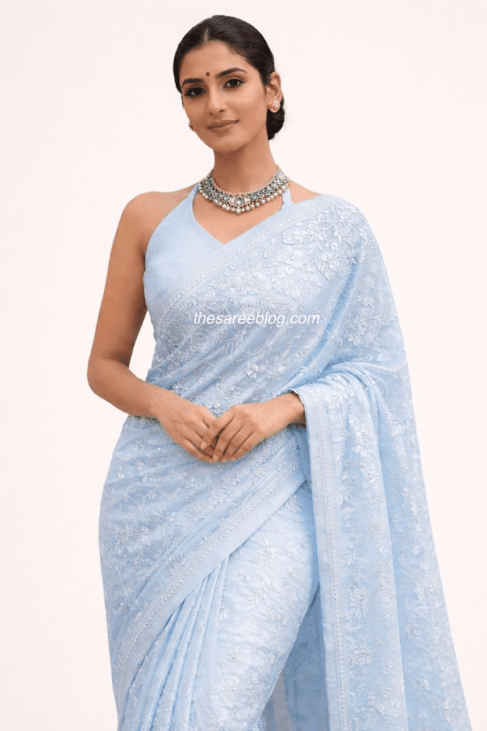 Mood 5: Quiet Luxury (Powder Blue Chikankari Saree)